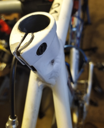 This frame had been damaged by tightening the seat clamp bolt too tightly. Repaired like this.