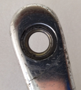 Occasionally, the thread in a crank becomes damaged. The repair method is to enlarge the pedal hole and tap a new, larger, thread in it. A thin steel bush is then screwed and thread-locked in place, creating a thread that is stronger than the original.