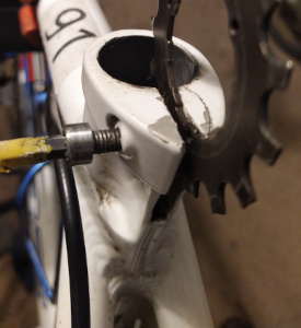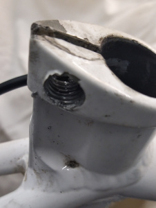 This frame had been damaged by tightening the seat clamp bolt too tightly.