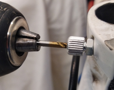 The plug was cut from a length of threaded bar and a screwdriver slot cut in one end. I drilled it in-situ as it probably wasn't tapped straight, so the hole would need to be off-centre. A brake adjuster was a convenient drill guide.