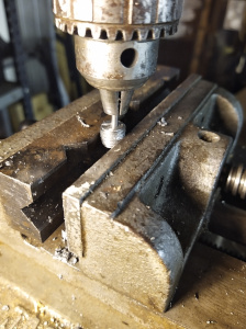 Using the pilot drill to align the plug in the vice, I opened the hole to the correct diameter.